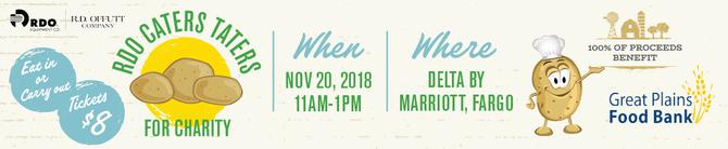 There is nothing quite like the RDO Caters Taters event. Thousands of baked potatoes are loaded up with toppings, raffle items are on display and, at the end of a short few hours, a local charity is handed a check that provides opportunity, needs and community right here in Fargo-Moorhead.