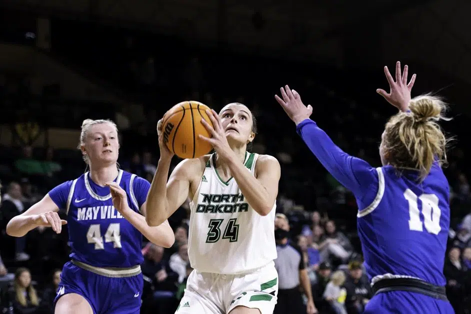 GRAND FORKS, N.D. – After a slow start and trouble with shots in the first quarter, the University of North Dakota holds on to beat Mayville State 72-65 on Wednesday evening at the Betty Engelstad Sioux Center.