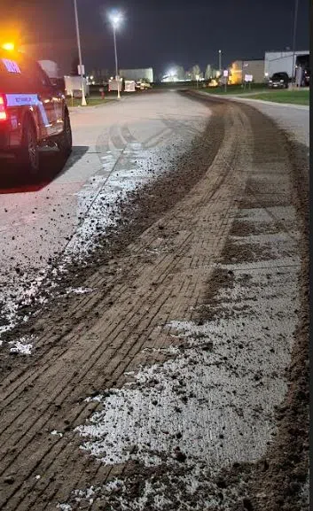 Tanker diesel fuel leak on roadway in West Fargo (Photo-KFGO)