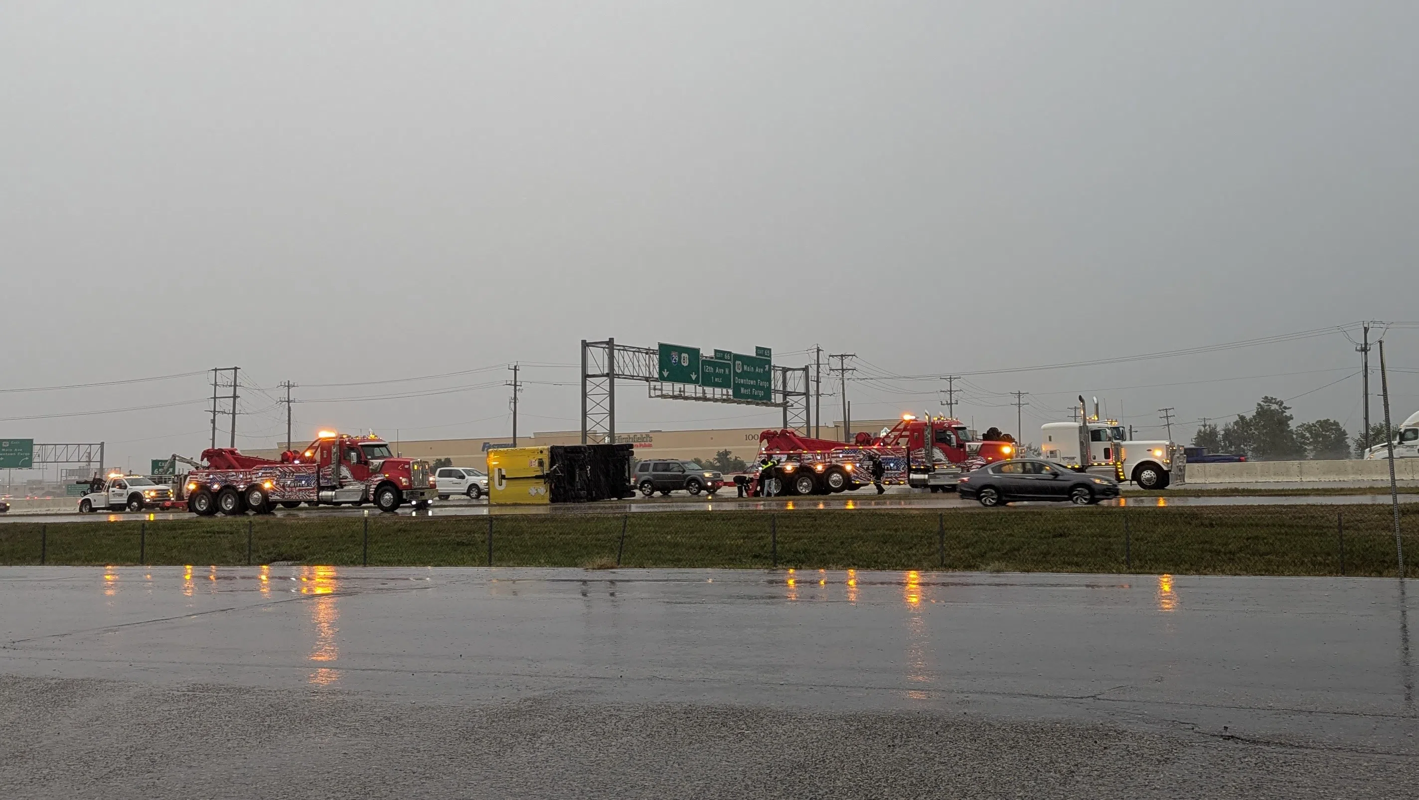It happened after 7:30 a.m. on southbound I-29 south of main avenue. The tipped trailer blocked two of the three interstate lanes, and backed up traffic past 12th Avenue N. for about a half-hour.
