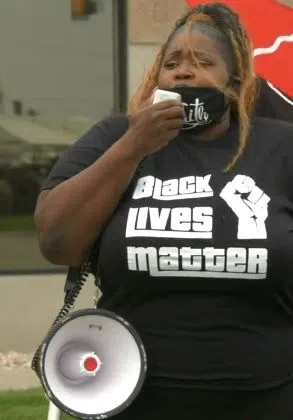 Faith Dixon at a Sept, 2020 Black Lives Matter protest in Fargo (KFGO file)