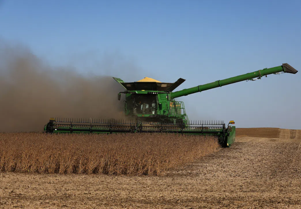 A producer harvests soybeans Sept. 28, 2025, near Hamberg, North Dakota. (Photo by Lora Wobbema/For the North Dakota Monitor)