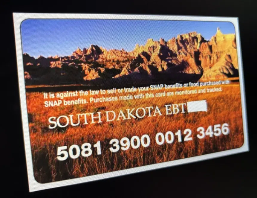 The website of the South Dakota Department of Social Services displays a sample EBT card, which is what participants in the Supplemental Nutrition Assistance Program use to buy food. (Screenshot by South Dakota Searchlight)