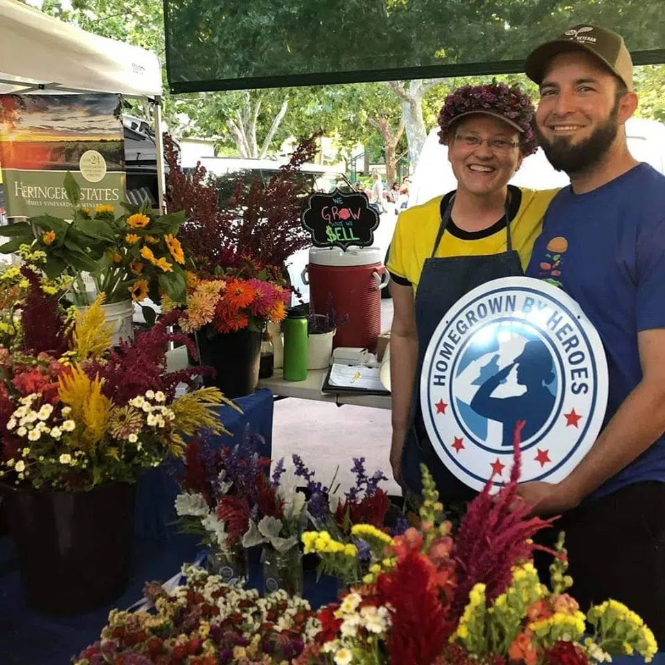 Rusty Halvorson Nov 22, 2021 Former Marine Cal Zamora and wife Aubrianne own and operate Zamora Flora, a Homegrown By Heroes certified specialty cut flower farm in Winters, Calif. (photo: Farmer Veteran Coalition)