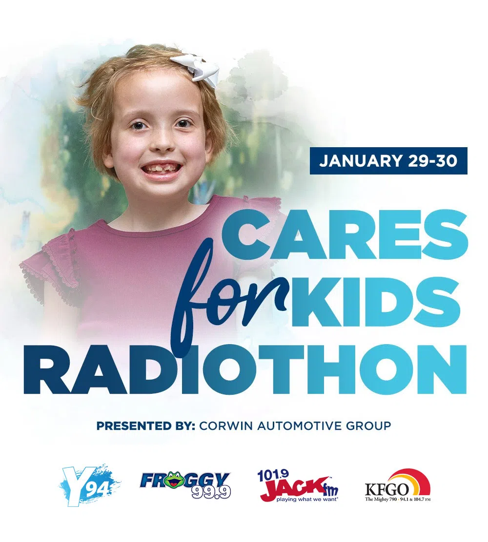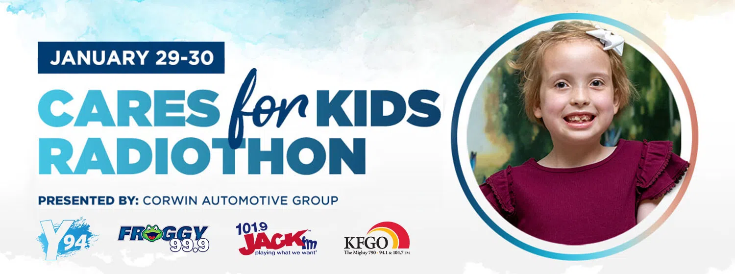 It’s the 26th Annual Cares For Kids Radiothon with Y94, Froggy 99.9, KFGO, and 101.9 JACK FM benefiting Children’s Miracle Network at Sanford Children’s Hospital! Listen to the Cares For Kids Radiothon live on our stations from 6am-6pm both days to hear stories of local children and families impacted by Sanford Children’s Hospital and become part of the miracle.