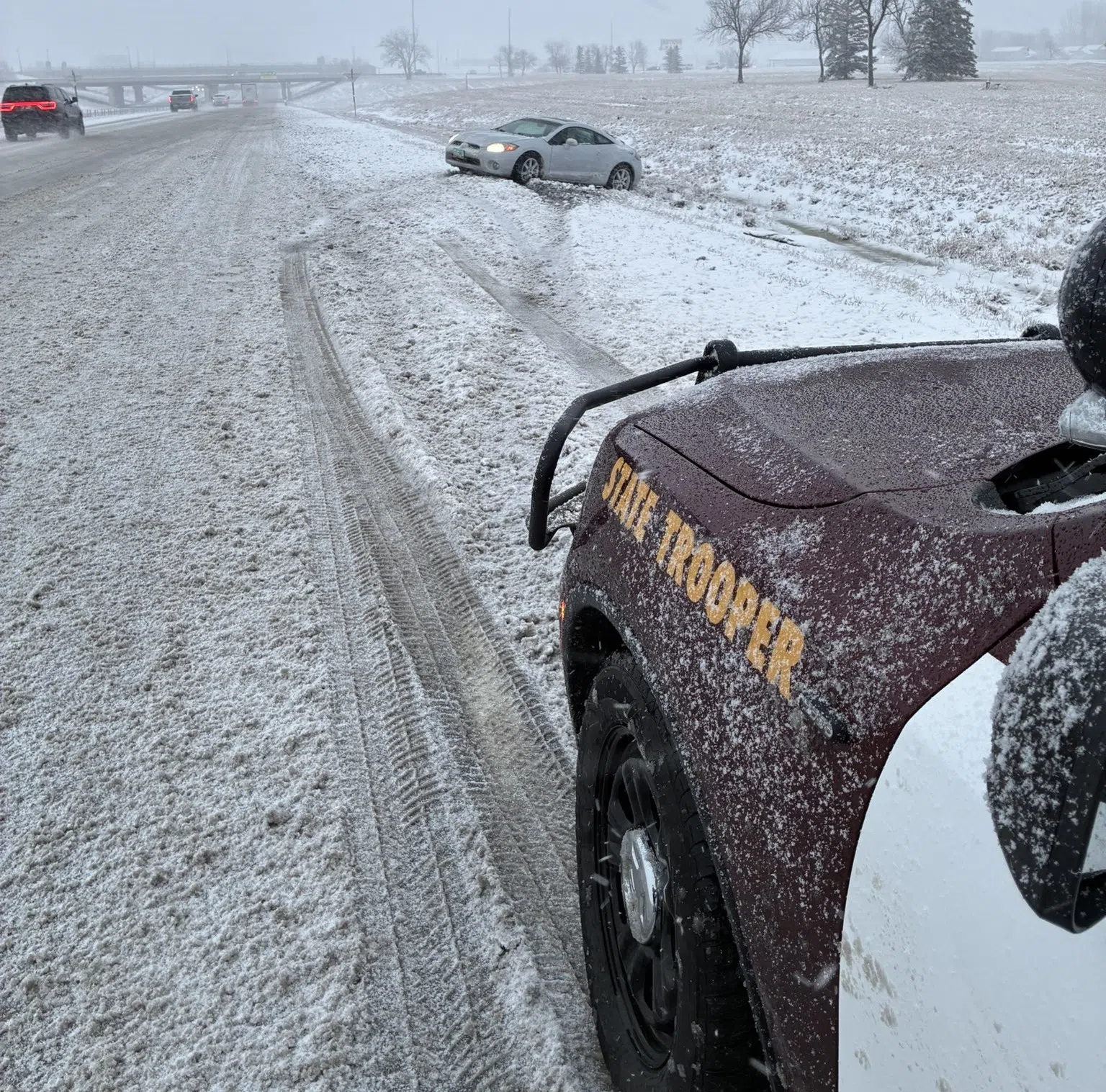Gretchen Hjelmstad and Ryan Janke Feb 18, 2026 Car slides off the road near Moorhead on Feb. 18, 2026